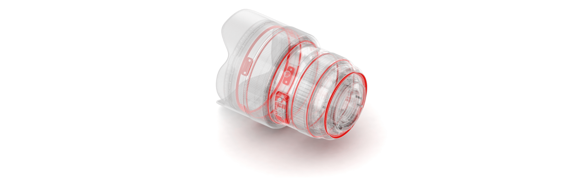 The first element in the optical system is a large-diameter aspherical lens. Optimizing the power distribution of this and the other lens elements minimizes distortion to 1% or lower.* As a result, points of light appear as points without streaking from the center of the image to the edge, and the light volume is also abundant throughout the frame. In addition, simulations performed from the design stage onward have helped minimize flare and ghosting. In combination, these technologies ensure excellent ultra-wide-angle performance.