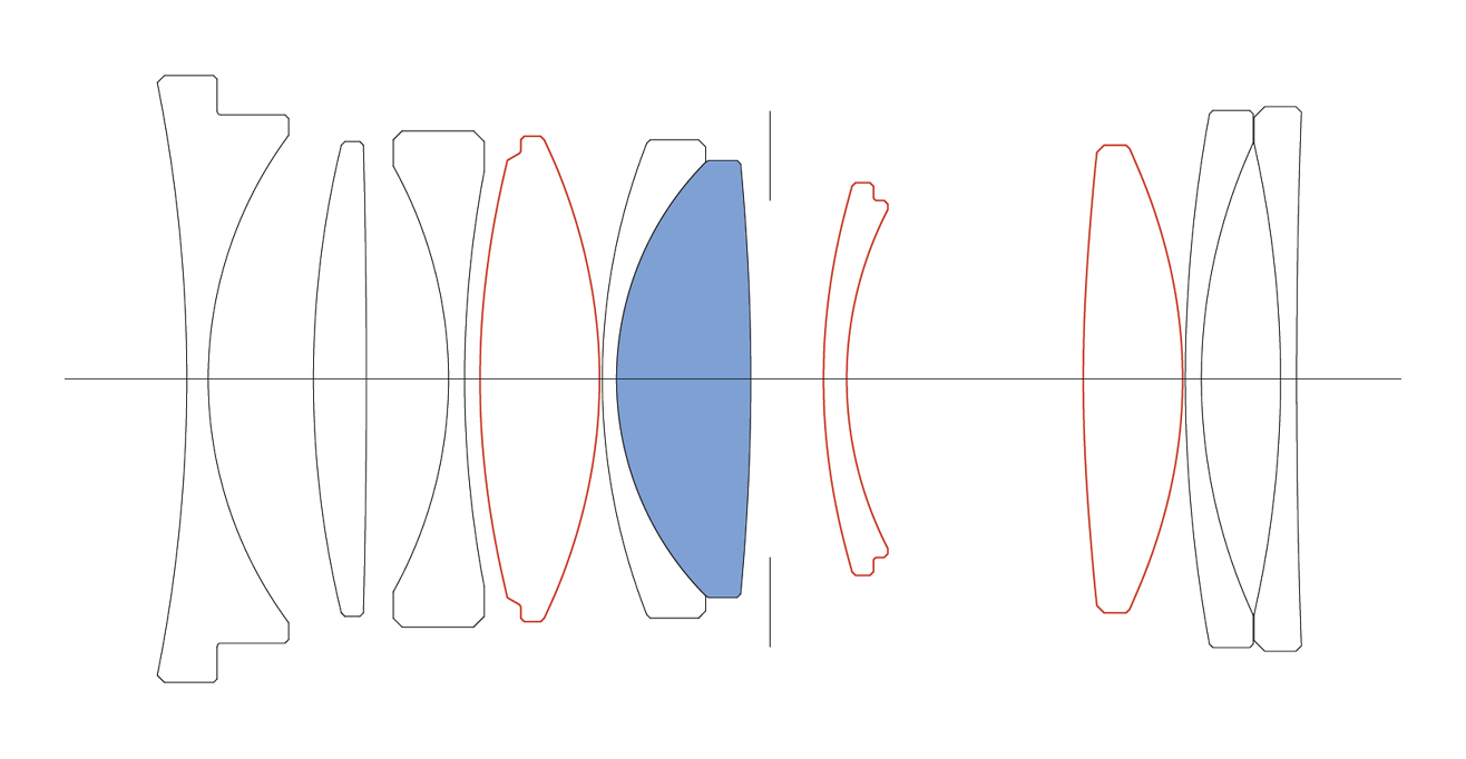 • 10 elements in 9 groups, with 1 SLD glass and 3 aspherical lenses