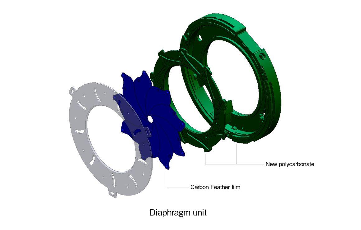The diameter of the diaphragm is the second-largest in the Sigma lens lineup after that of the Sigma 200-500mm F2.8 /400-1000mm F5.6 EX DG, necessitating smoother and quicker operation than ever before. To achieve this goal, the diaphragm blades feature Carbon Feather film, and the diaphragm unit features a new polycarbonate made with fluorine. Thanks to these innovations, diaphragm operation is exceptionally smooth even during continuous shooting, while the new polycarbonate is exceptionally durable and wear-resistant.