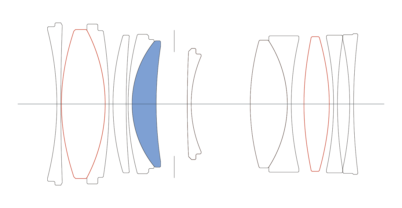 • 12 elements in 9 groups, with 1 SLD glass and 2 aspherical lenses