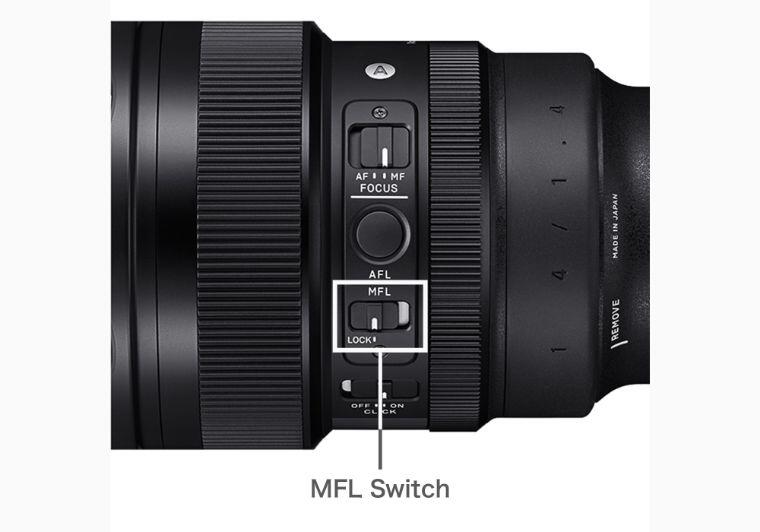 The MFL (Manual Focus Lock) switch disengages the focus ring on the lens. After manually focusing the lens to the desired position, set the MFL switch to 'LOCK' in order ]to disengage the focus ring.