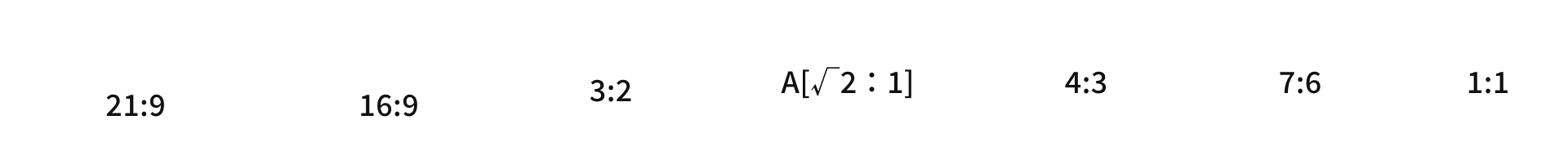 | Image aspect ratio | [21:9] / [16:9] / [3:2] / [A Size (√2:1)] / [4:3] / [7:6] / [1:1] | |